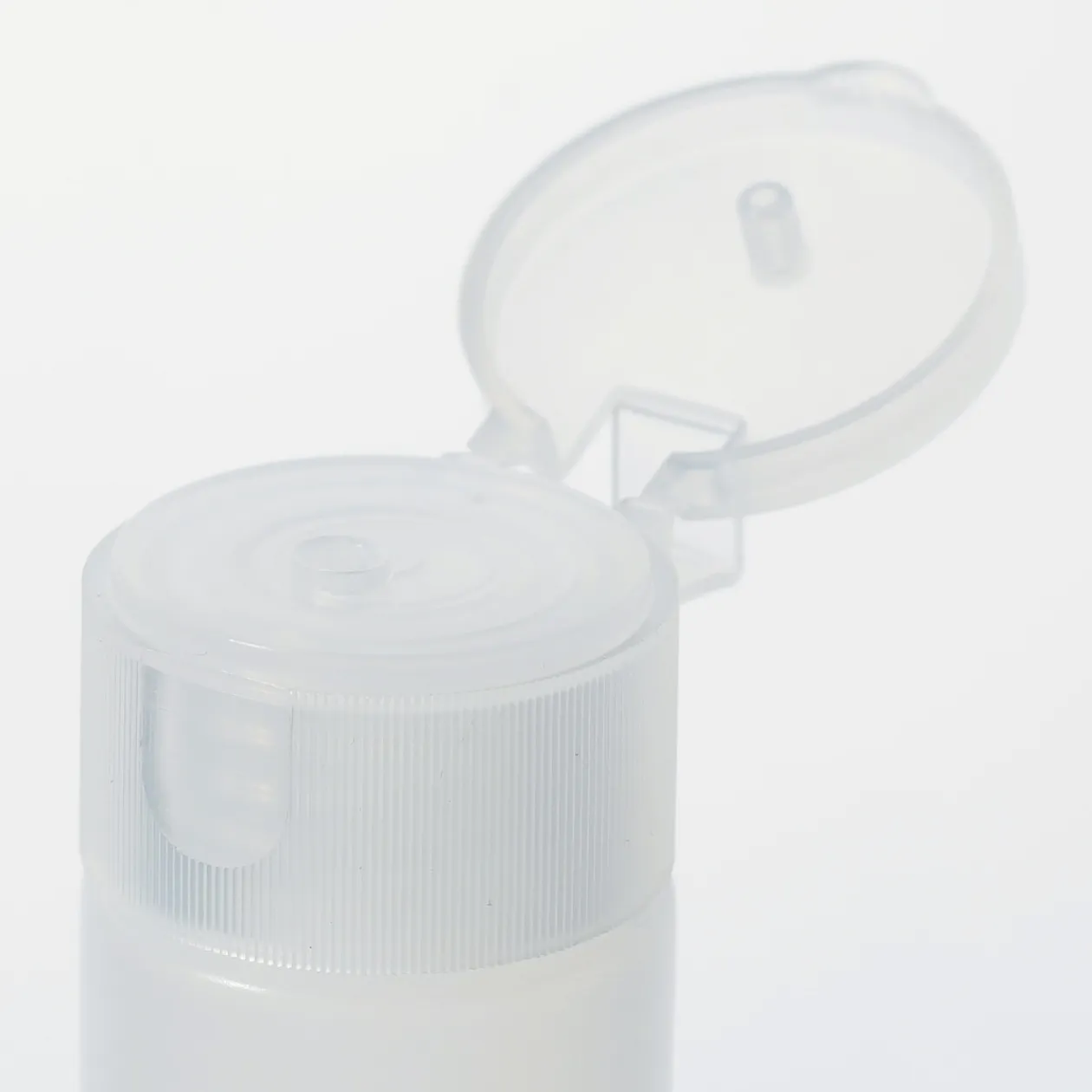 Fiole bouchon à clip ‐ 30ml.Pour respecter les règles de sécurité dans les avions, pour les bagages en cabine, Muji a développé une gamme de fioles et flacons de voyage dont les contenances vont de 30ml à 100ml.Flacons bouchon a vis: lotions. Flacon avec pulvérisateur: liquides a base d’eau. Flacons à pompe: lait hydratant et crèmes pour le corps. Flacons à corps souple et bouchon a clip: gels douche et shampoings.NE CONVIENT PAS POUR: parfum, alcool, solvants, vinaigre.