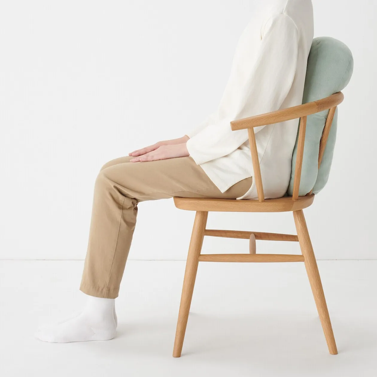 ‐ Placé horizontalement sur une chaise, le coussin s’étend sur les côtés et soutient les bras