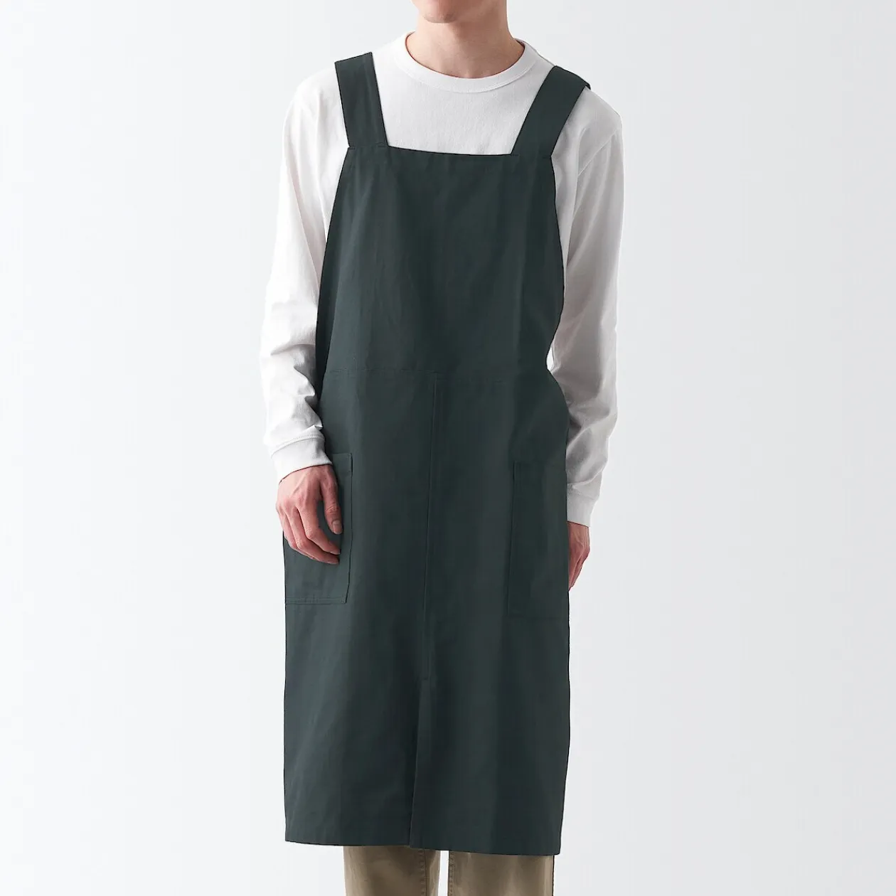 Tablier de travail résistant aux taches, fabriqué en tissu durable et conçu pour les professionnels. Dispose de grandes poches frontales et de fentes latérales pour plus de confort, de liberté de mouvement et de praticité.