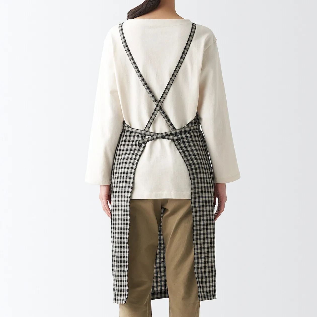 Tablier de type tasuki, couramment utilisé dans les cafés pour prévenir la fatigue du cou causée par les sangles. La longueur et la largeur sont réglables grâce aux attaches.