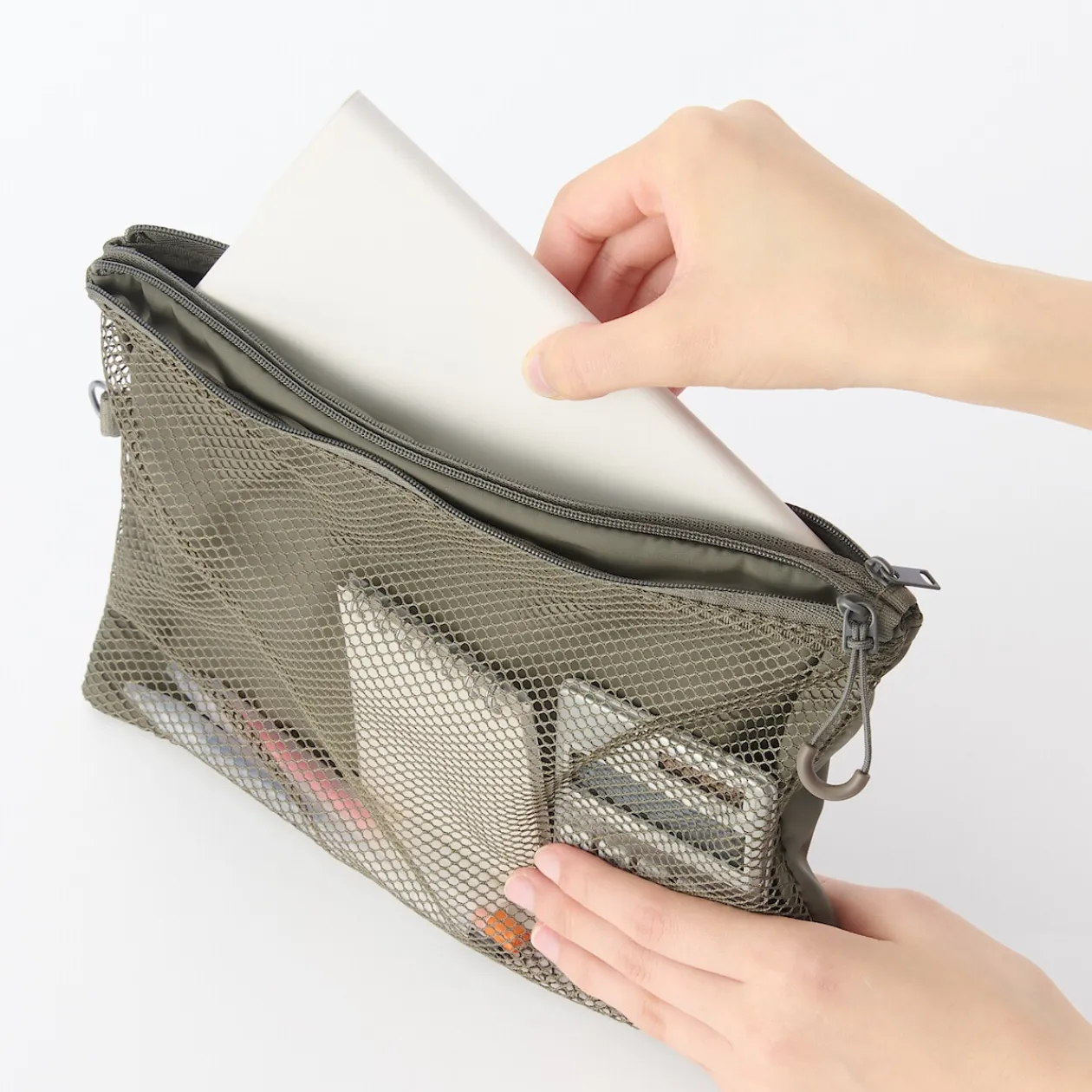 La double fermeture éclair permet d’organiser facilement les petits objets.