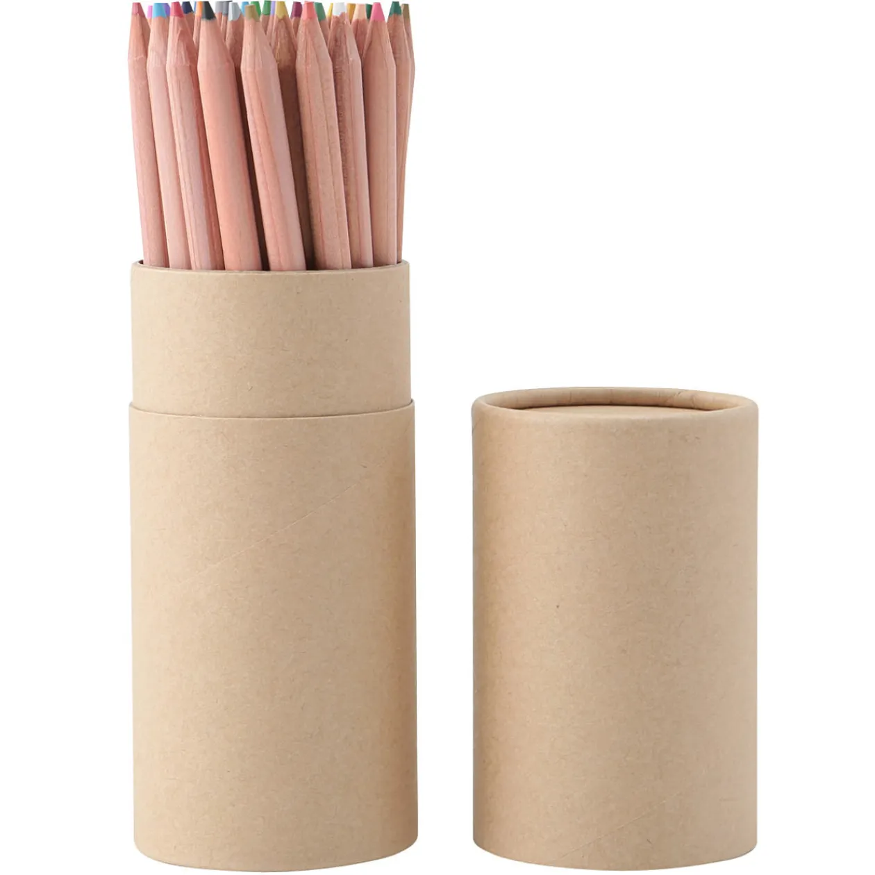 36 crayons de couleur, corps bois naturel (cèdre). Vendu dans son tube en kraft L Diamètre 7.5 X Hauteur 17.6cm.