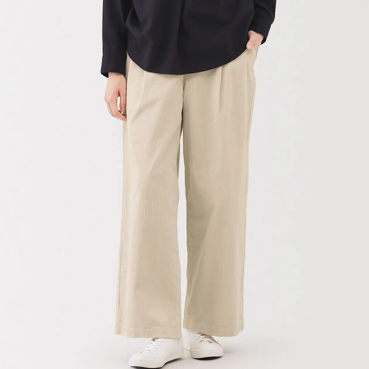 Une douceur naturelle, un confort durable. Ce pantalon à jambes larges, confectionné dans un velours côtelé mélangé à du kapok, est léger et respirant, avec des plis sur le devant pour plus de confort et une meilleure coupe.