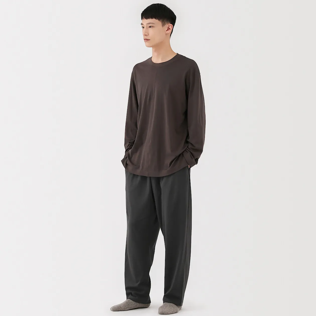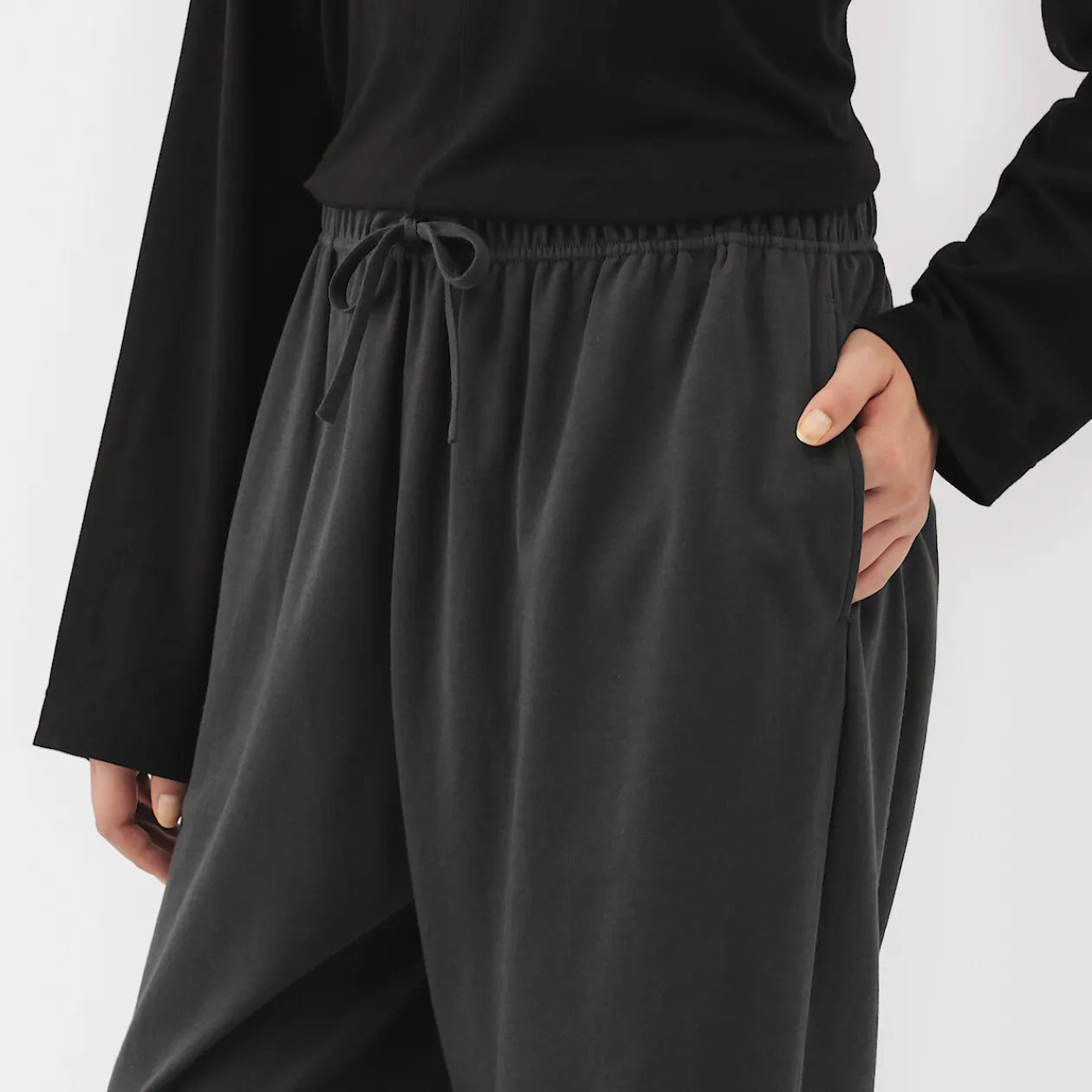 Le confort quotidien, perfectionné. Confectionné à partir d’un jersey de coton biologique lisse avec des fibres extra‐longues pour plus de douceur et de résistance, ce pantalon large et fuselé est soigneusement fini avec des coutures placées de manière à améliorer l’aisance et le confort pour dormir, se détendre ou sortir.