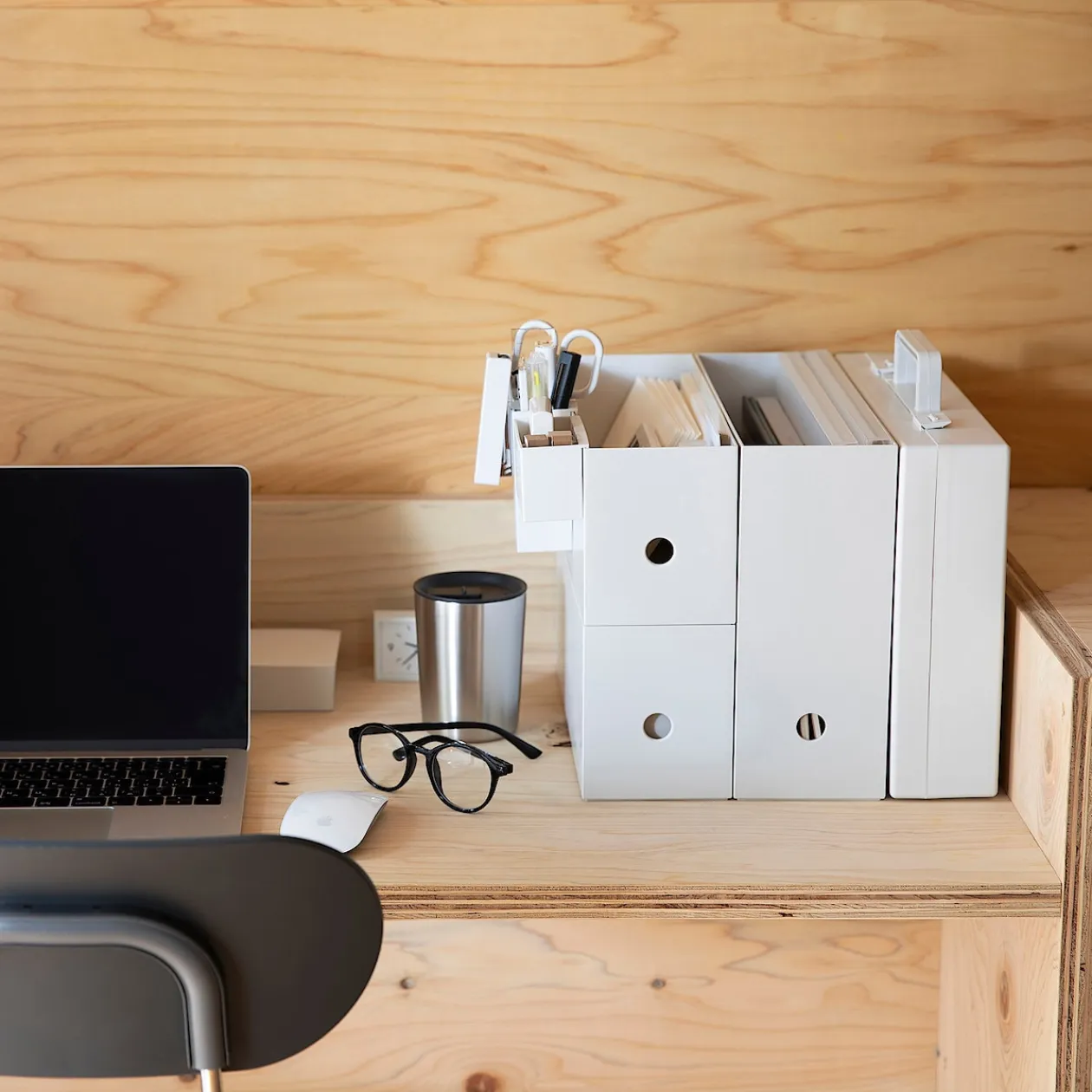 Deux fois moins haute qu’une boîte d’archives classique. Jusqu’à 3 boîtes peuvent être empilées.