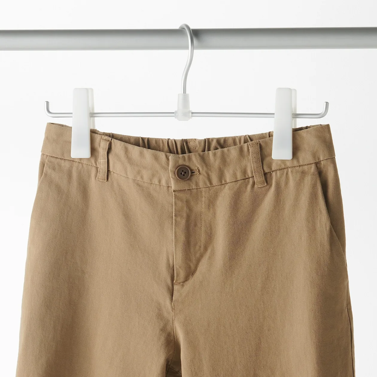 Cintre à pinces en aluminium et polypropylène blanc. Pour les jupes et pantalons.