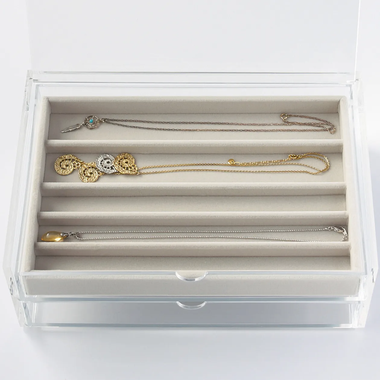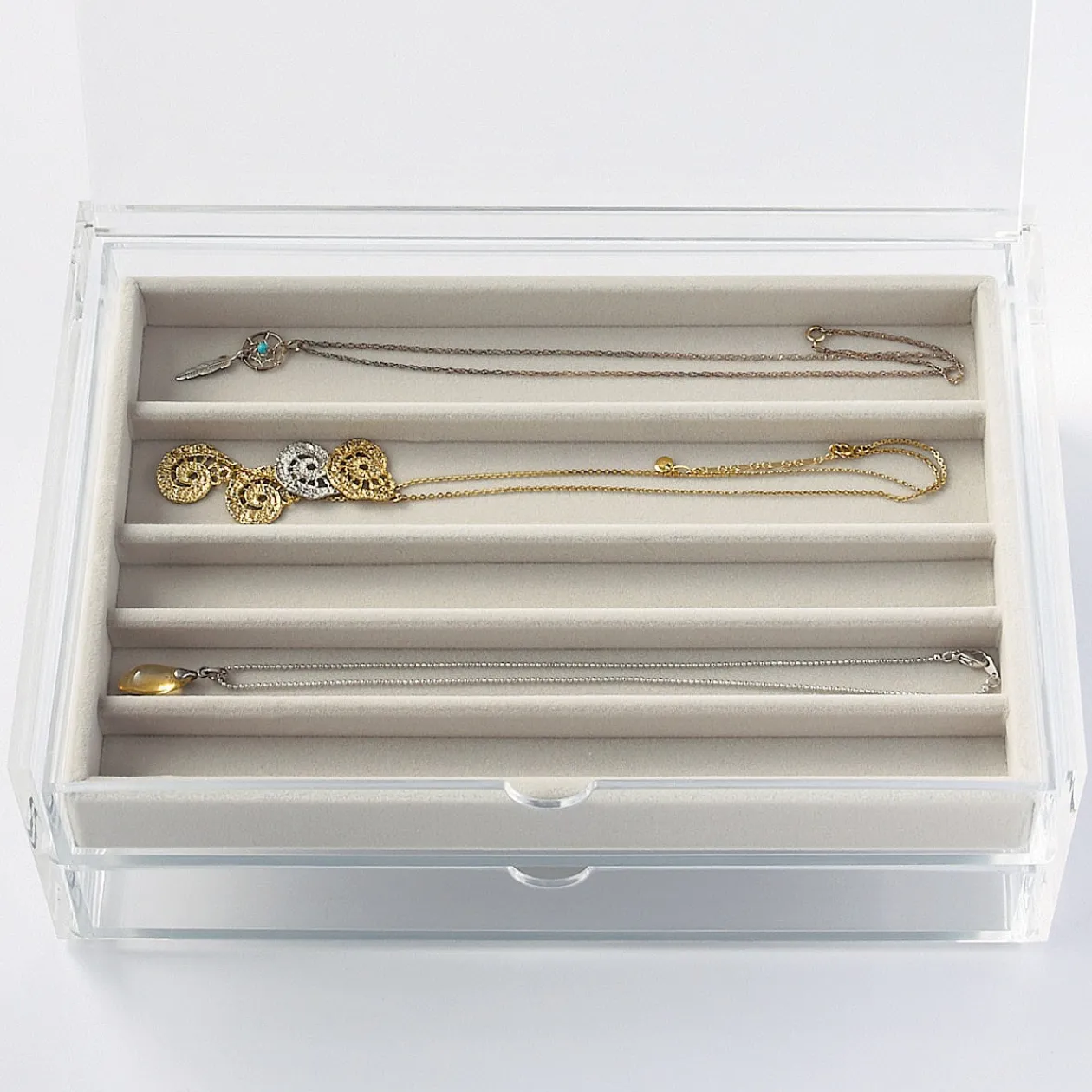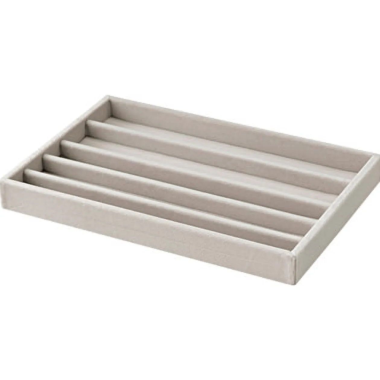 24 x 16 x 2.5cm. Plateau en velours gris pour bijoux, 5 compartiments en long pour bracelets, s’adapte dans les grandes boîtes tiroirs acrylique