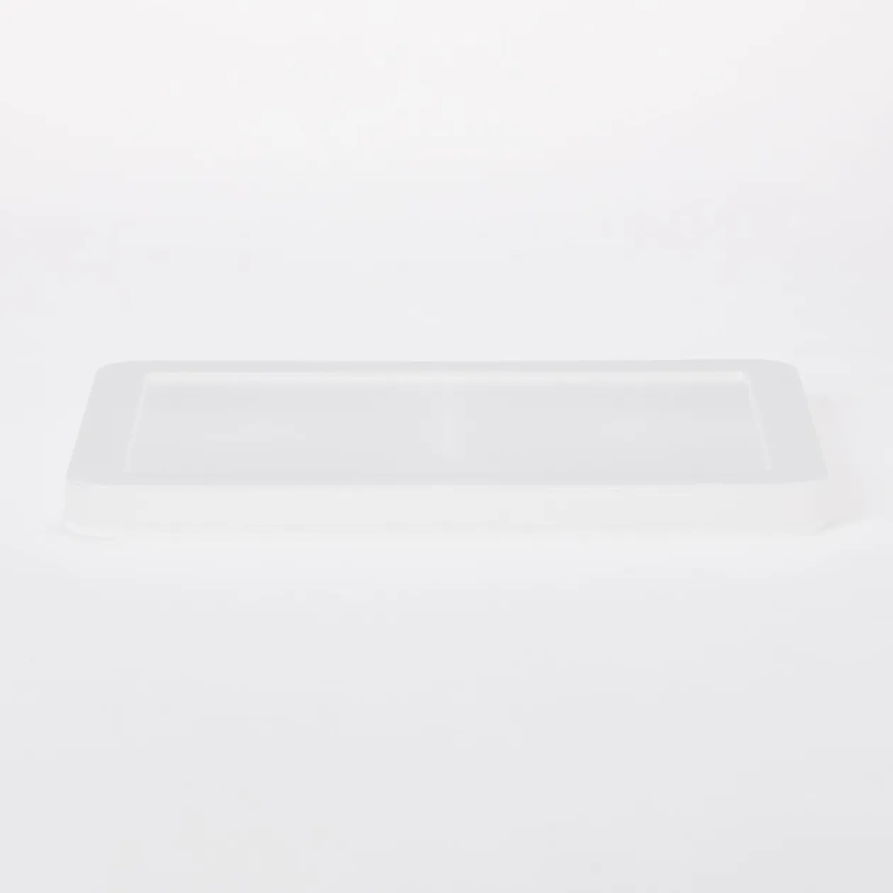 Couvercle pour boîte de rangement en polypropylène. Le rebord du fond de la boîte s’emboîte dans la rainure du couvercle, de sorte qu’il ne glisse pas lors de l’empilage.