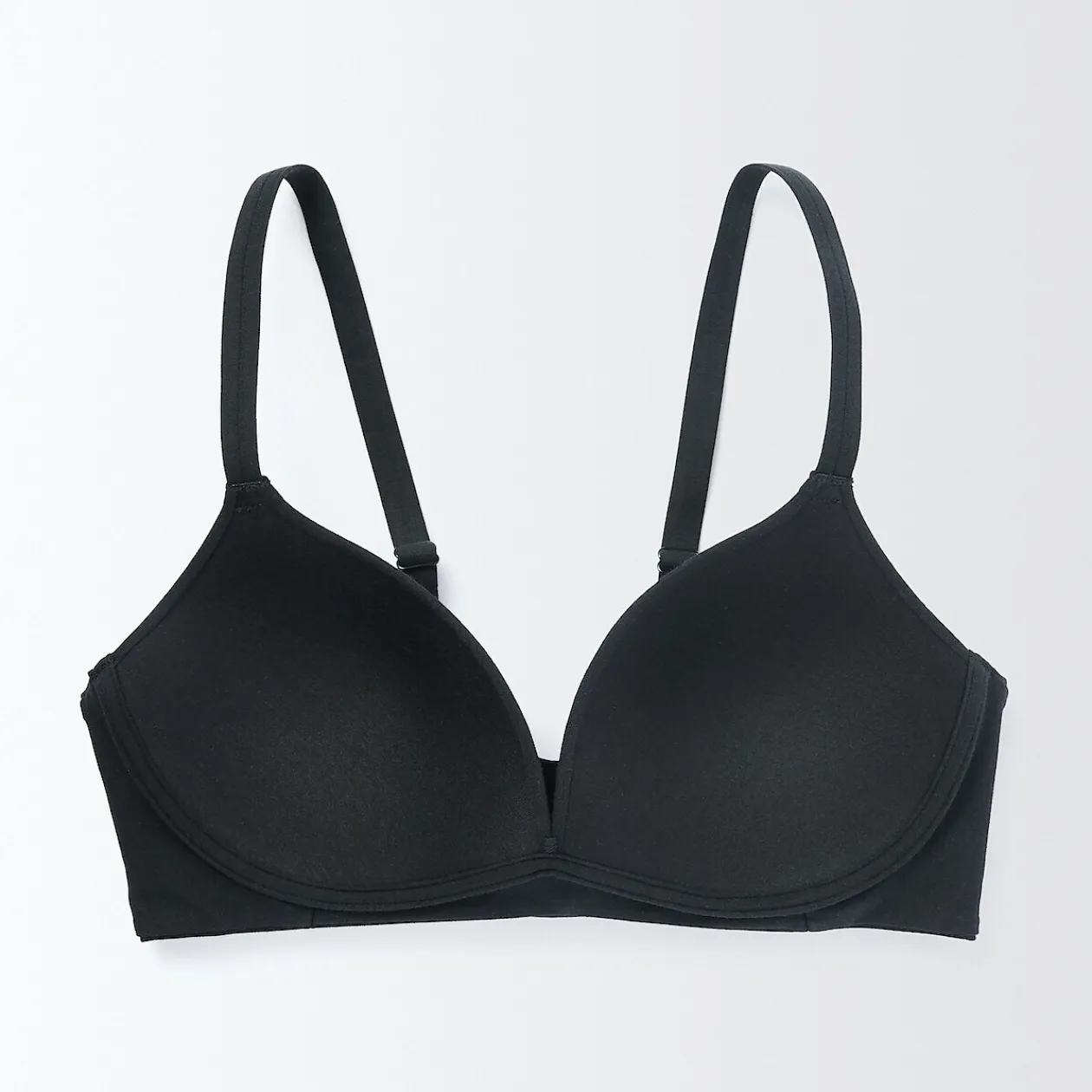 Le bonnet triangulaire offre un soutien sans le pincement des armatures. Les techniques de collage et de couture se combinent pour assurer la tenue et le confort.