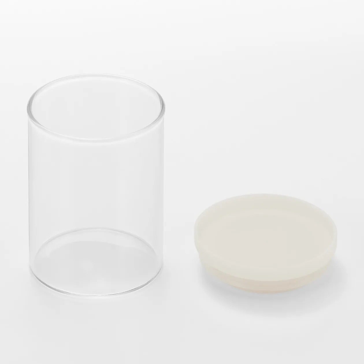 Pot en verre résistant à la chaleur, contenance 320ml. Couvercle en polypropylène blanc. 7.5 x 11cm.Fabriqué exclusivement pour MUJI, ce pot en verre garde le contenu isolé mais reste froid au toucher. Verre 100 % résistant à la chaleur.
