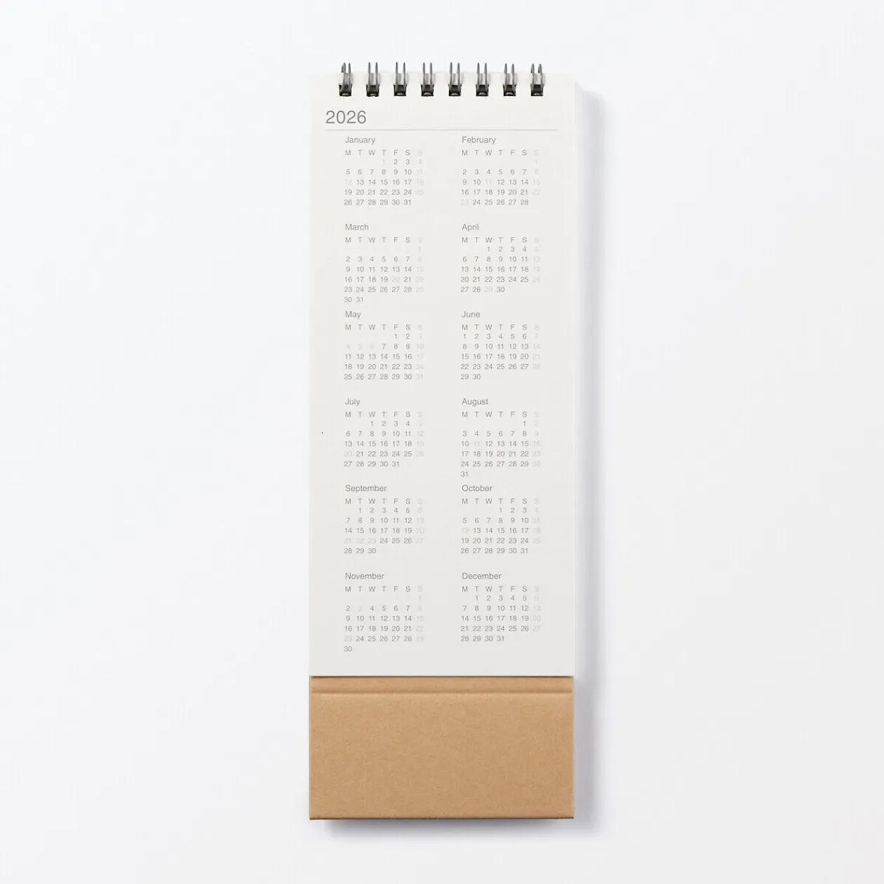 Votre semaine, en un coup d’œil. Ce calendrier vertical affiche une semaine par page, de janvier à décembre 2026. Conçu pour être utilisé sur un bureau grâce à un support simple, il permet de visualiser la semaine à venir.