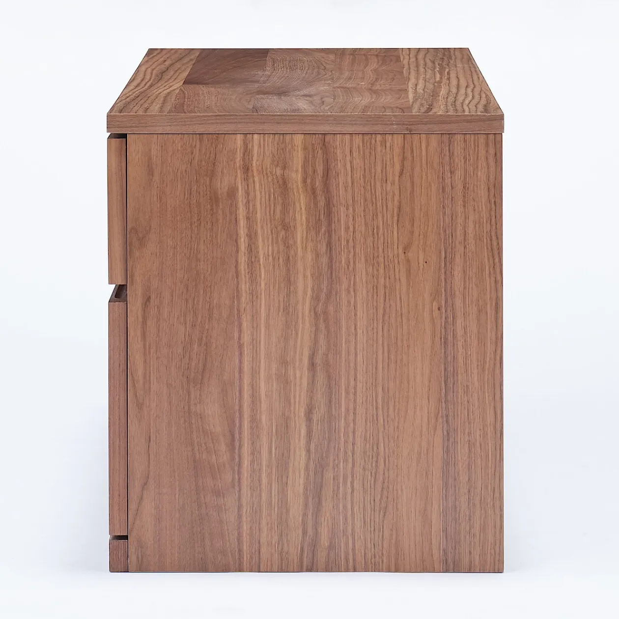 Panneaux latéraux et façades de tiroirs : panneau de fibres plaqué bois naturel (placage noyer à surface lisse),