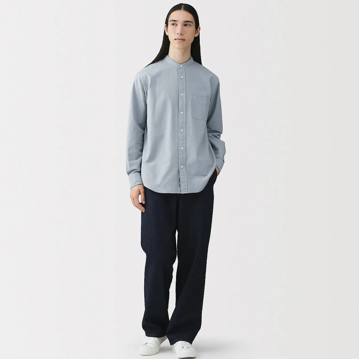 Notre chemise Oxford à col officier est une preuve de style durable avec un attrait intemporel. Inspirée par l’esthétique japonaise intemporelle, cette chemise incarne un style classique qui peut être porté année après année.