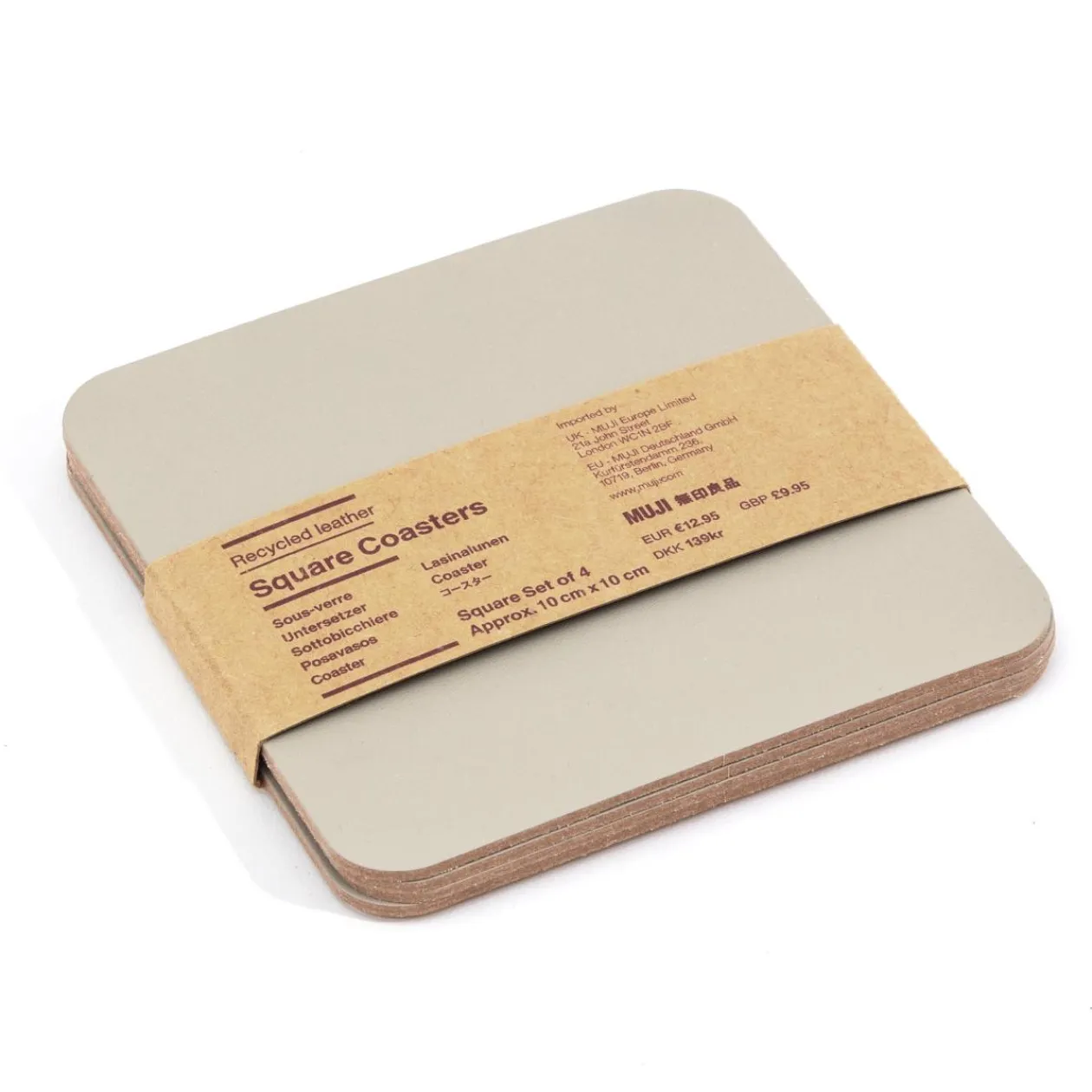 Disponibles en lot de quatre, ces dessous de verre sont un complément raffiné à toute table de salle à manger ou de salon. Ils sont fabriqués à partir de cuir recyclé pour apporter une touche éco responsable à votre intérieur. Des sets de table assortis sont disponibles.