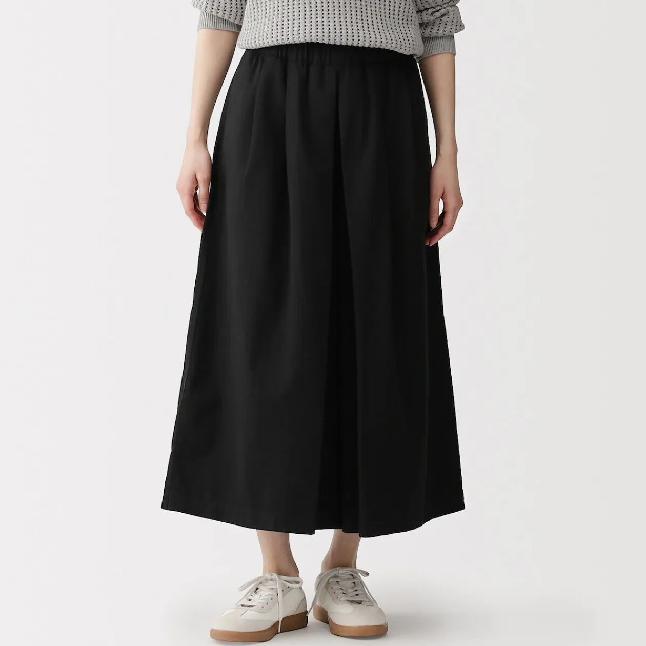 Faite d’un tissu à mailles douces, cette jupe-culotte offre une coupe large et décontractée, ouverte et libre, combinant l’élégance d’une jupe avec l’aisance d’un pantalon.