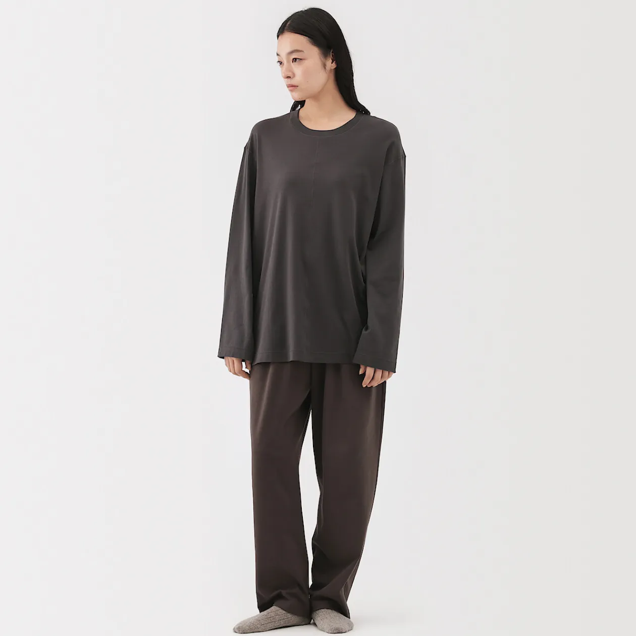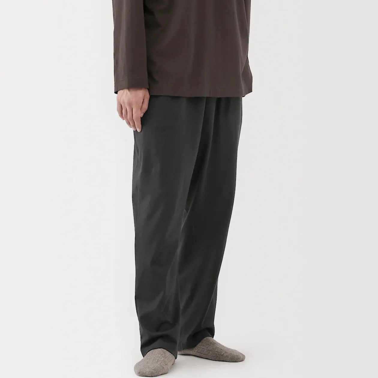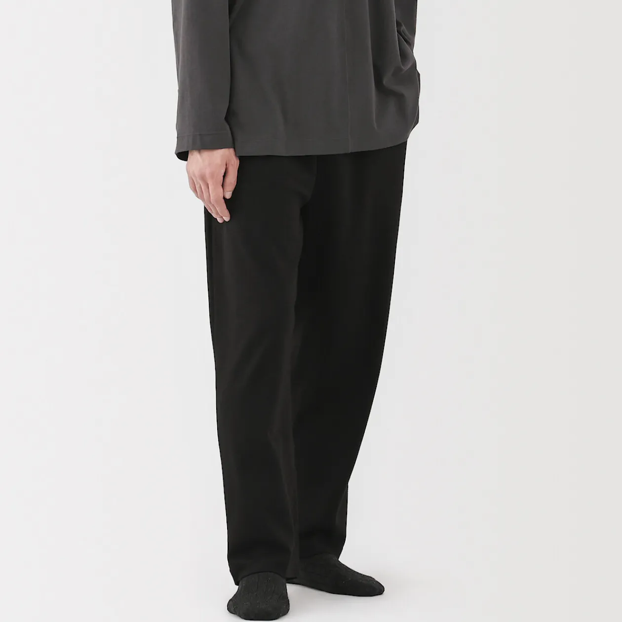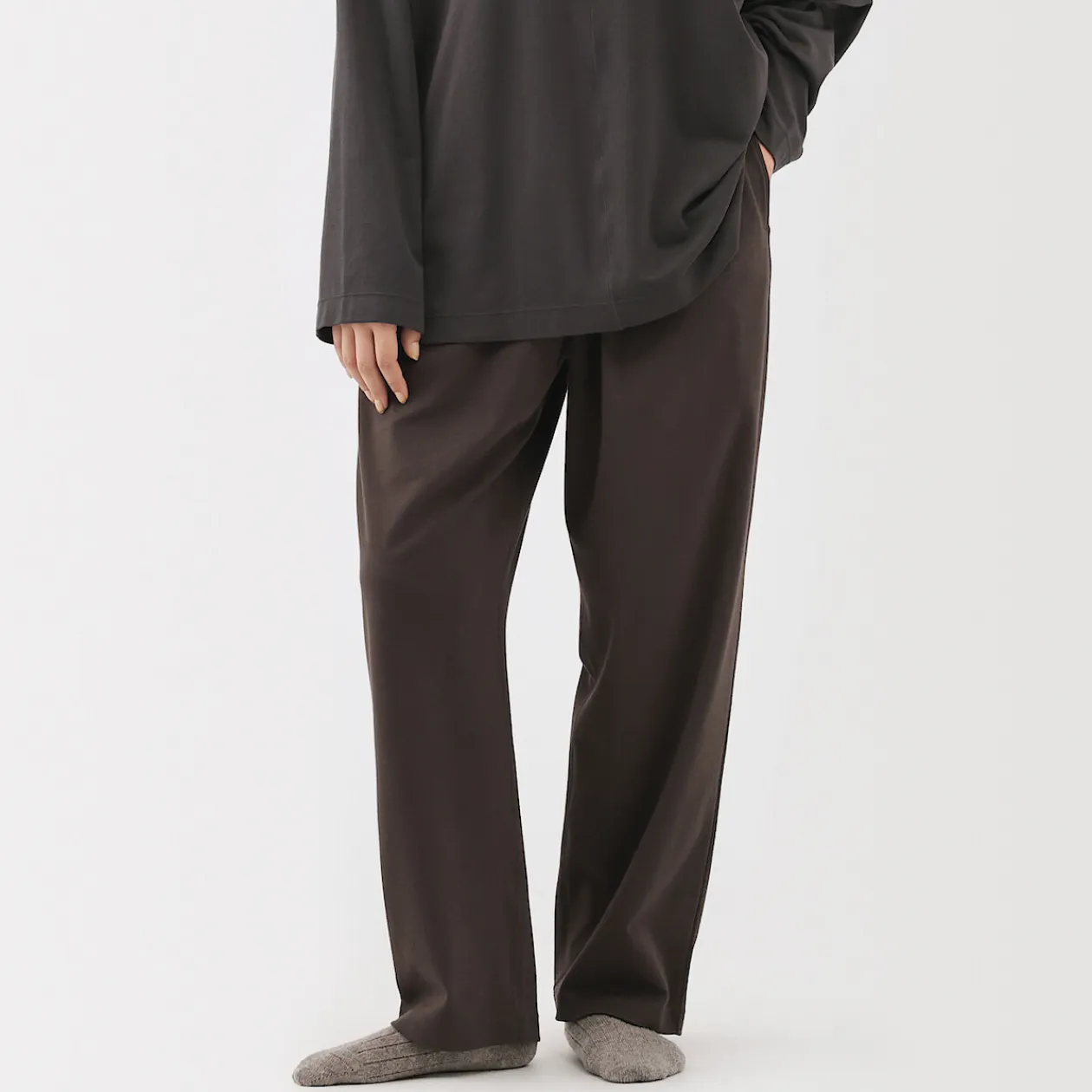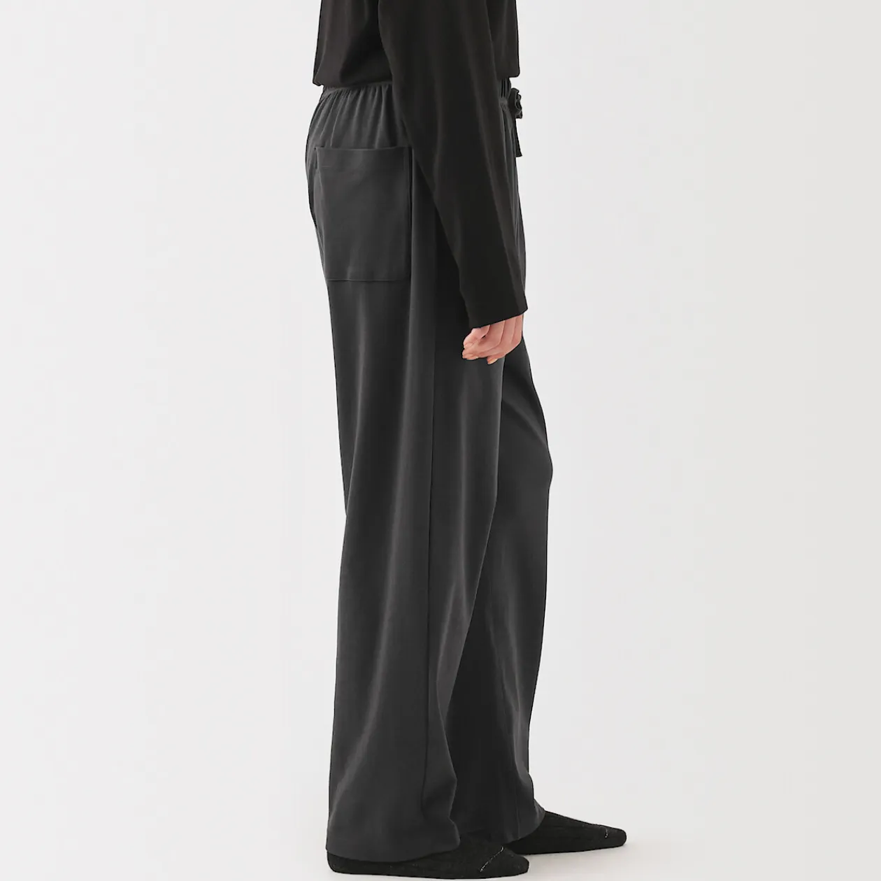 Le confort quotidien, perfectionné. Confectionné à partir d’un jersey de coton biologique lisse avec des fibres extra‐longues pour plus de douceur et de résistance, ce pantalon large et fuselé est soigneusement fini avec des coutures placées de manière à améliorer l’aisance et le confort pour dormir, se détendre ou sortir.