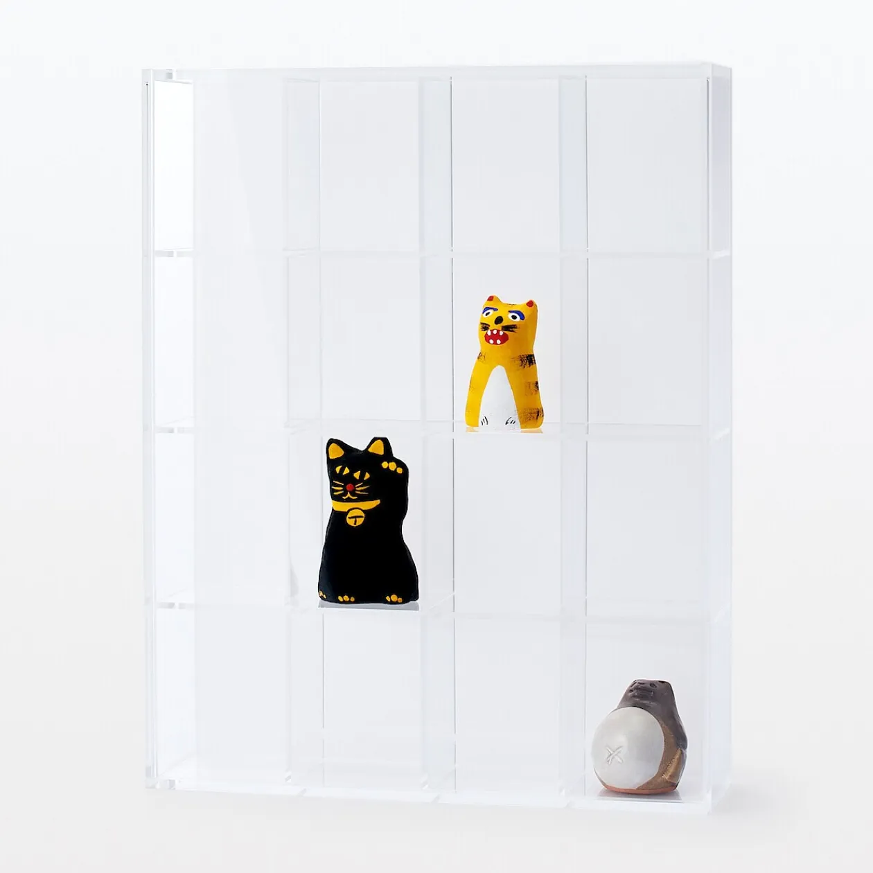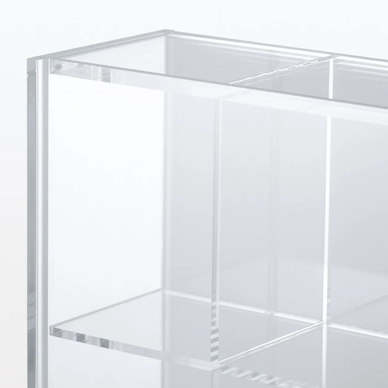 Tout organisé et visible en un endroit. Boîte de rangement en acrylique avec 16 compartiments, conçue pour des articles de petite taille. La face avant est dotée d’un panneau coulissant transparent, tandis que l’arrière présente un panneau coulissant translucide qui peut également être retiré.
