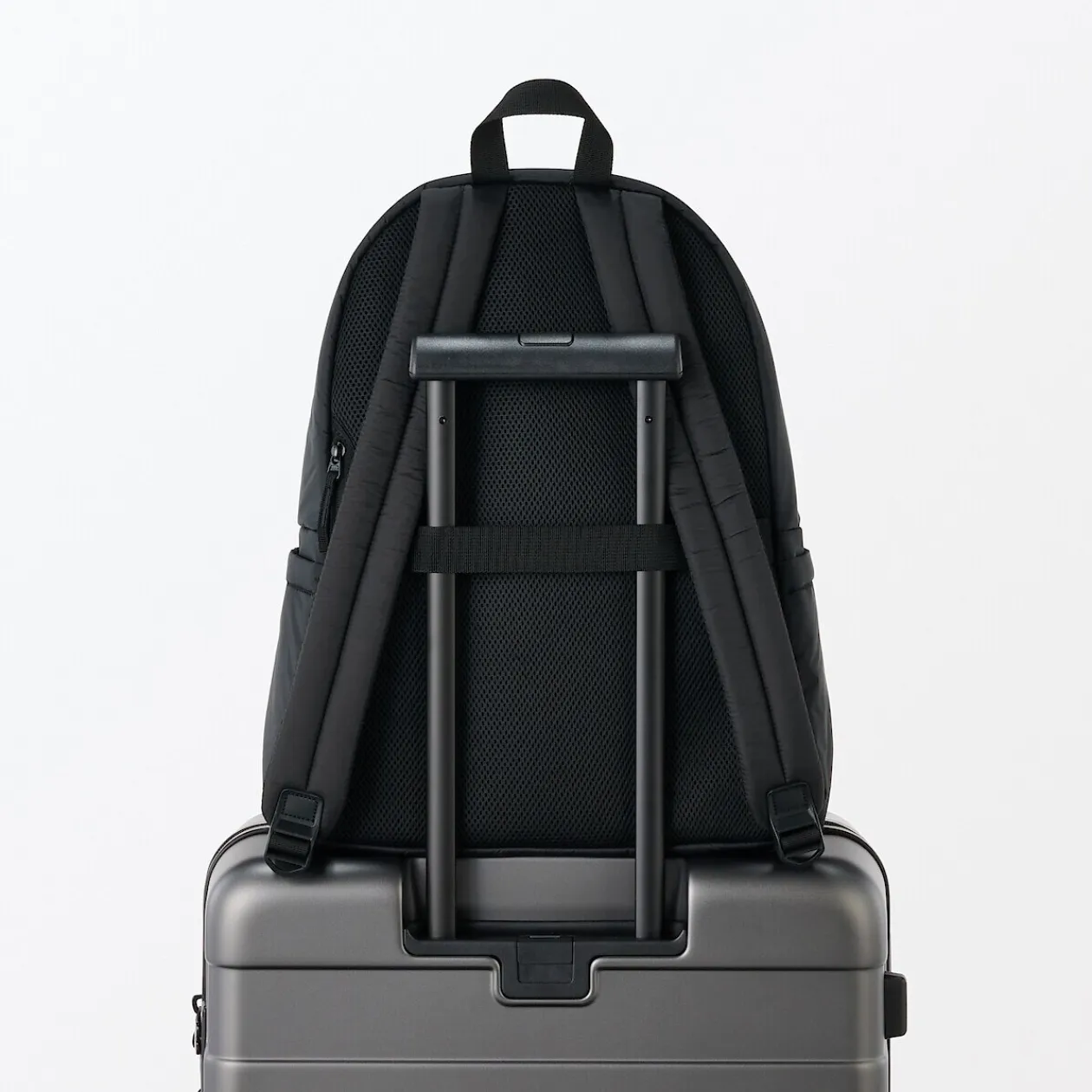 Le confort en toute légèreté, fabriqué de manière responsable. Les bretelles brevetées MUJI sont conçues pour réduire la fatigue en répartissant uniformément le poids, tandis que le tissu déperlant et les compartiments intelligents permettent de transporter des charges lourdes plus facilement et de manière plus organisée.