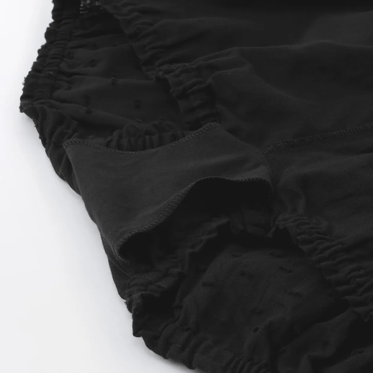 – Douce double gaze avec pois dobby texturés