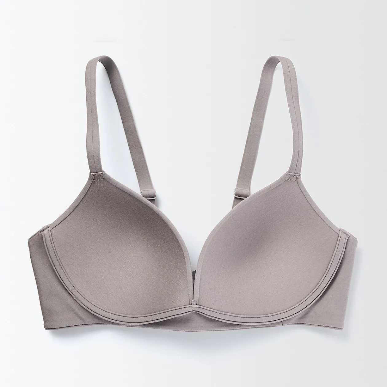 Le bonnet triangulaire offre un soutien sans le pincement des armatures. Les techniques de collage et de couture se combinent pour assurer la tenue et le confort.