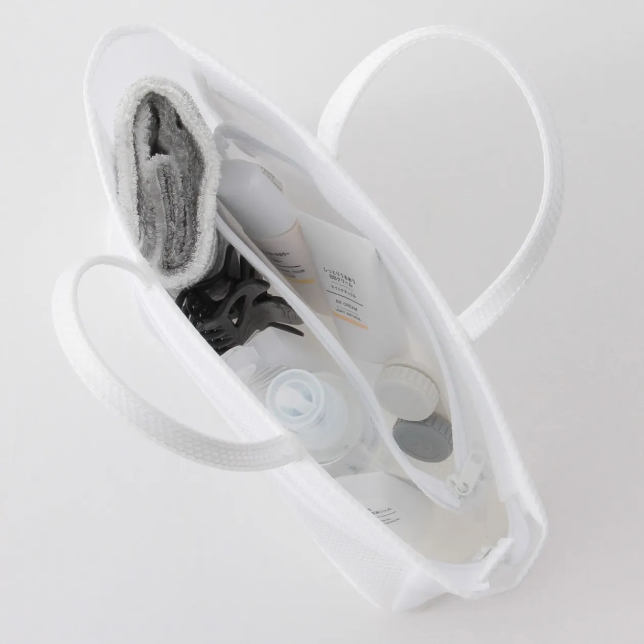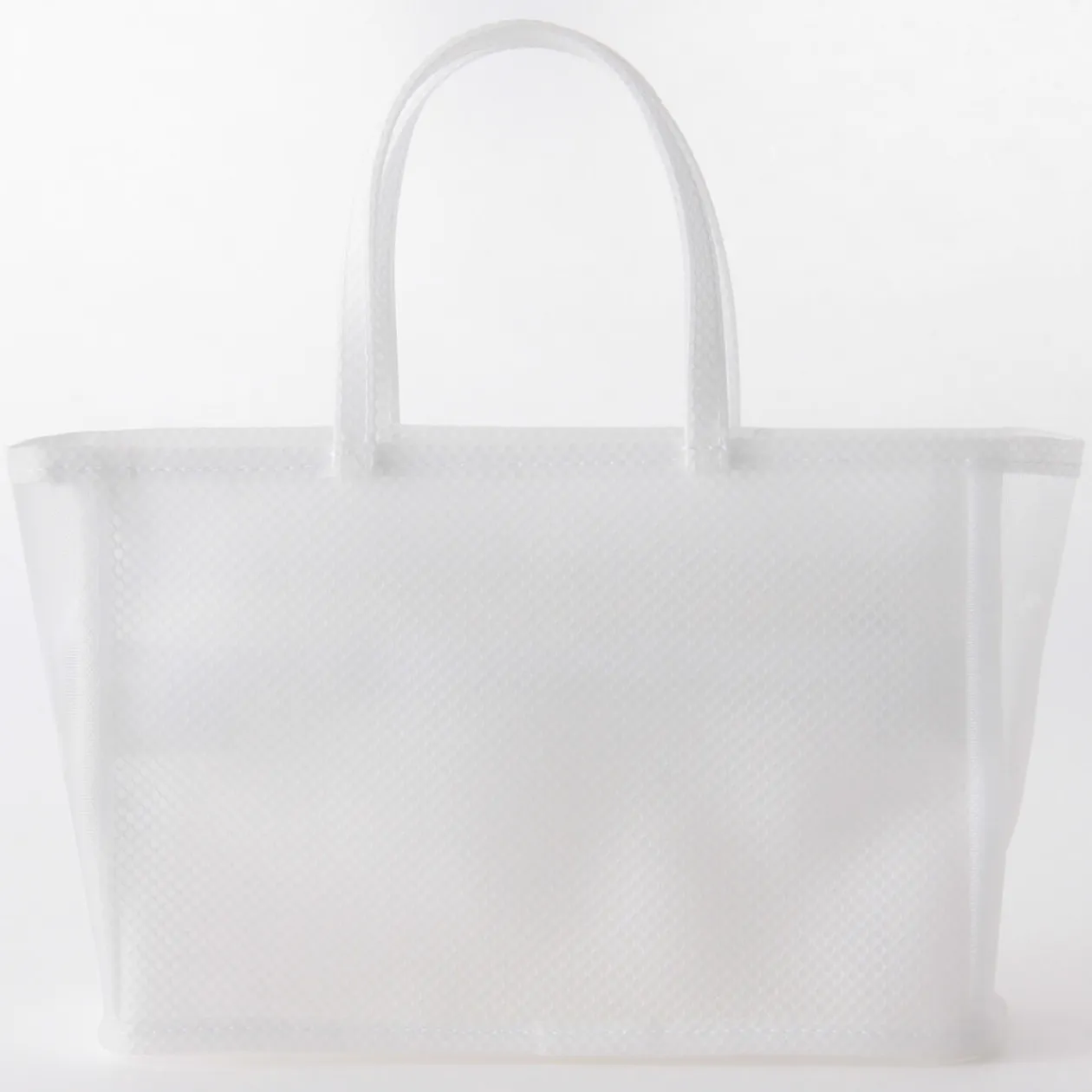 15.5 X 28.5 X 9cm. Sac en EVA translucide, imperméable et résistant, idéal pour la gym ou la piscine. Il est hydrofuge et très durable.